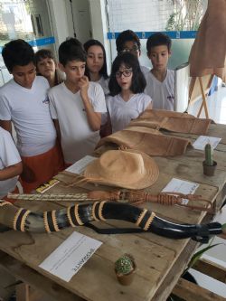 Na mostra, muitas crianças também estão conhecendo gibão, perneira, chapéu e outros equipamento de proteção usados pelos vaqueiros na lida diária na caatinga, à procura de animais.